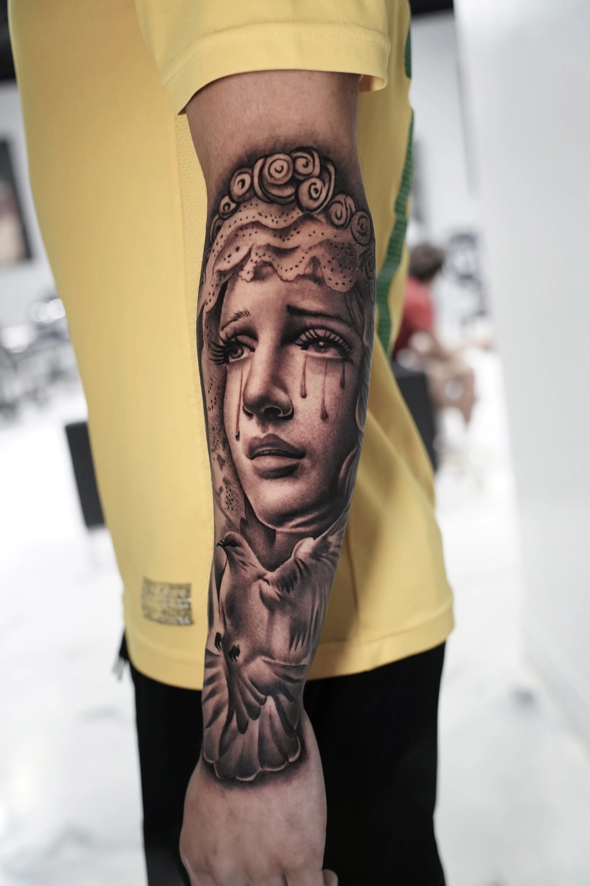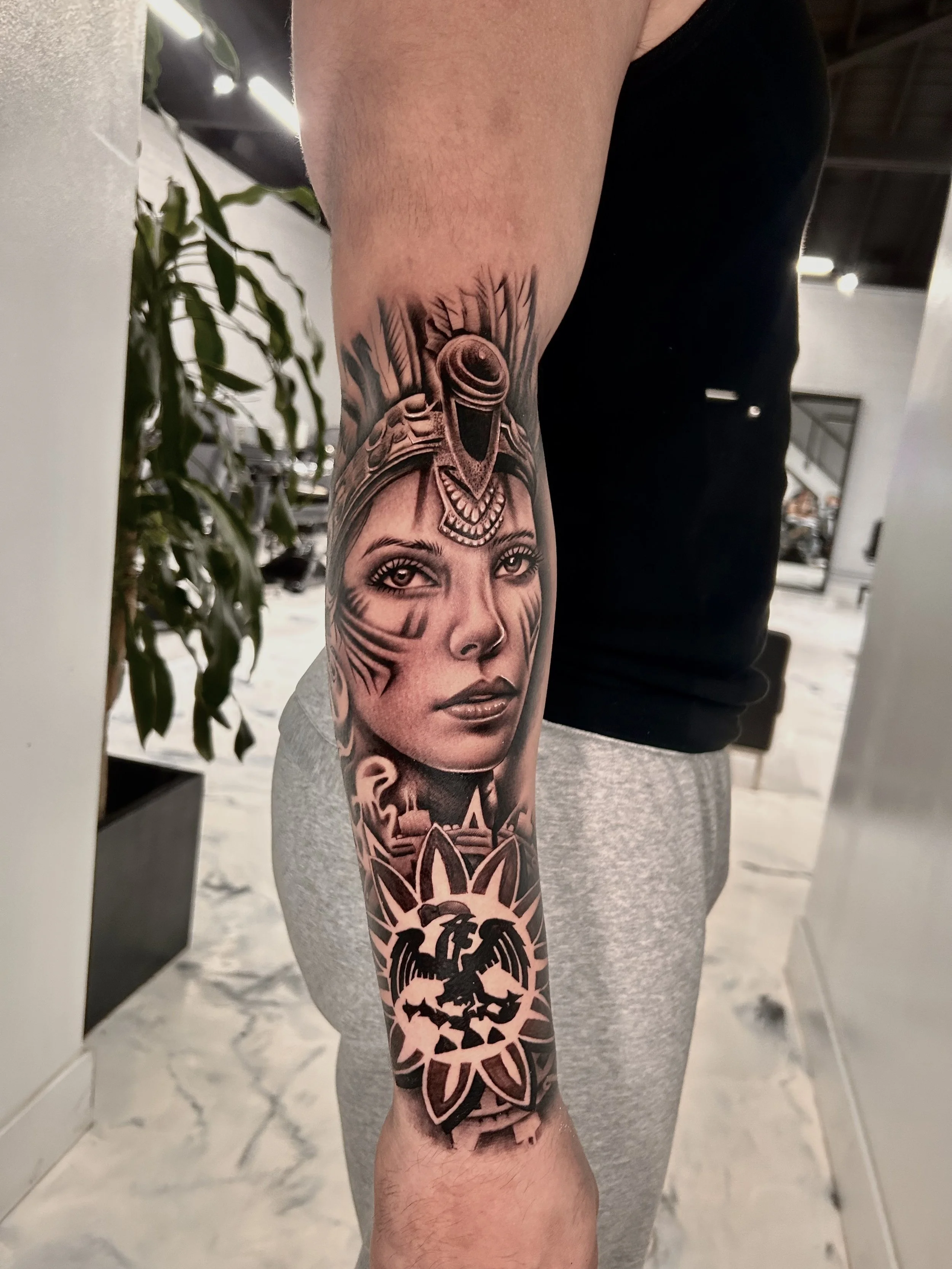 Tony is 32 years old, has been tattooing for 4 years, and specializes in black & grey surrealism. Tony is a father of 2, a husband, and a man of God. Tattooing is not just a job to him, its how he supports his family, its his creative outlet, and a way for him to connect deeply with other people. He loves to do cultural tattoos such as aztec/mayan themed pieces and also religious tattoos, but has the skillset and versatility to execute any ideas you might have. Smooth and meticulous, Tony’s style is a great choice for anybody looking for not only a beautiful tattoo, but also an awesome experience with someone who cares deeply. Select “Tony” as your artist upon filling out the booking form.